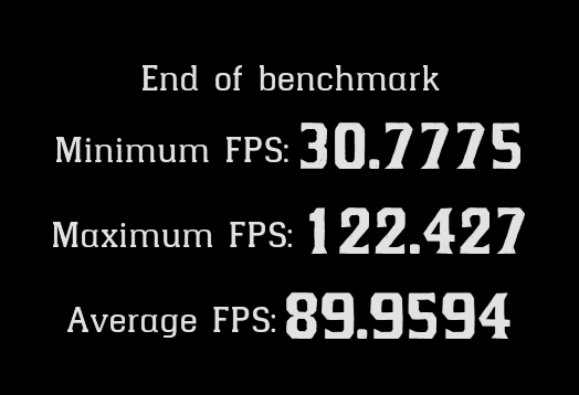 I wanted benchmarks that were simple to replicate, so I used built-in benchmark tools from popular games and took screenshots of the results screen.