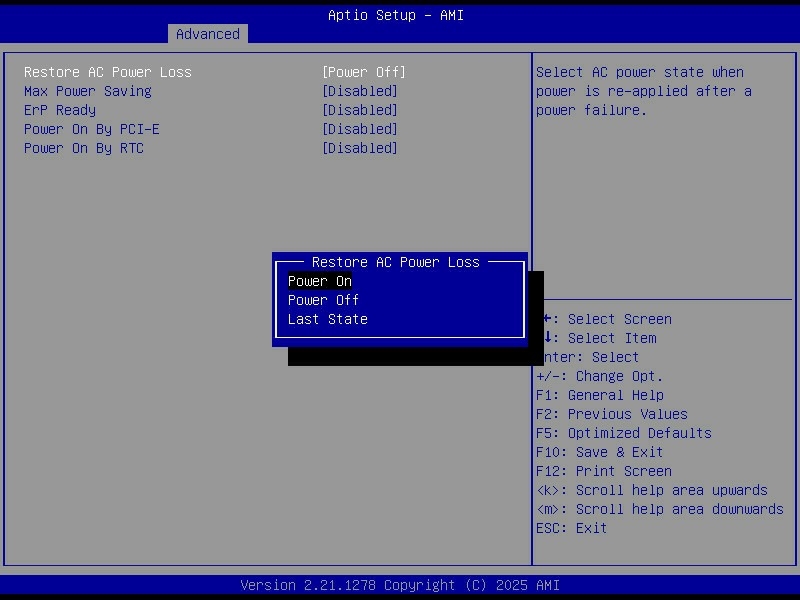 - Configured AC power recovery so the server automatically powers back on after a blackout.