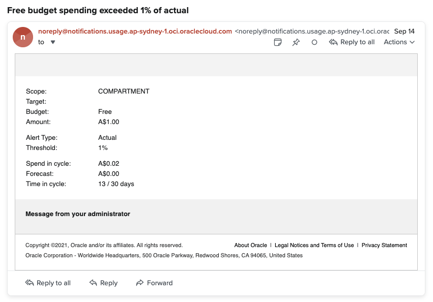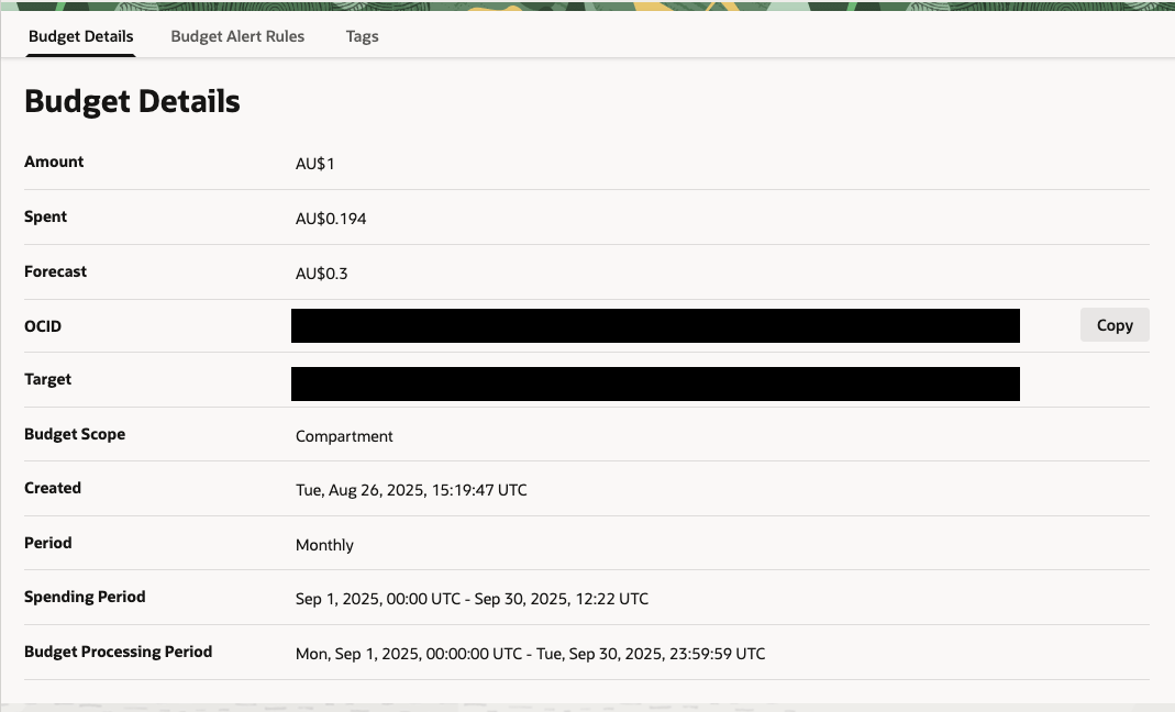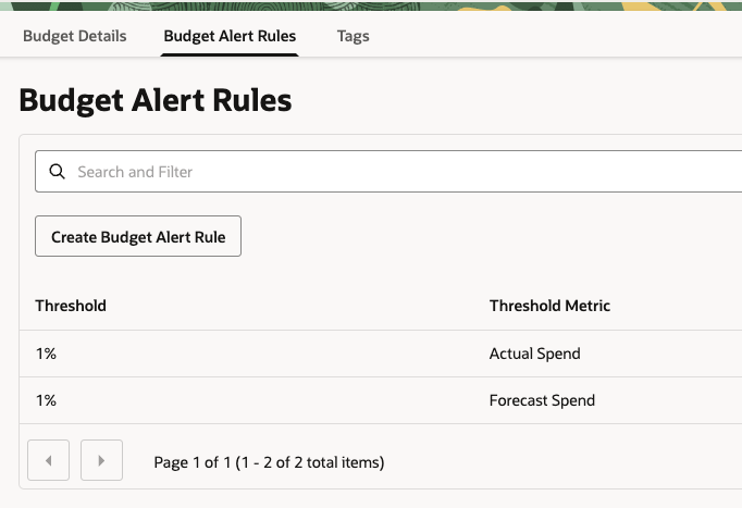 To be cautious, I created a $1 budget and two 1% alert rules to be notified whenever the account begins accruing costs.