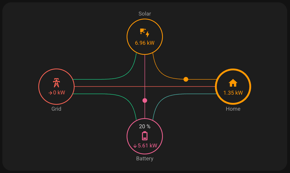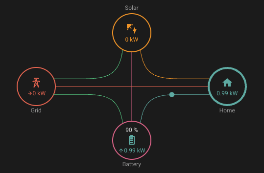 - When the battery runs out, the house falls back to pulling from the grid (and solar, if the sun is out).
